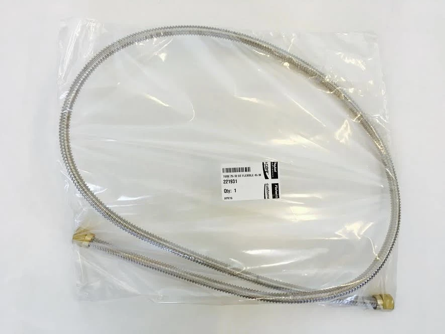This DCS Stainless steel flex line connects to the Rotisserie Valve