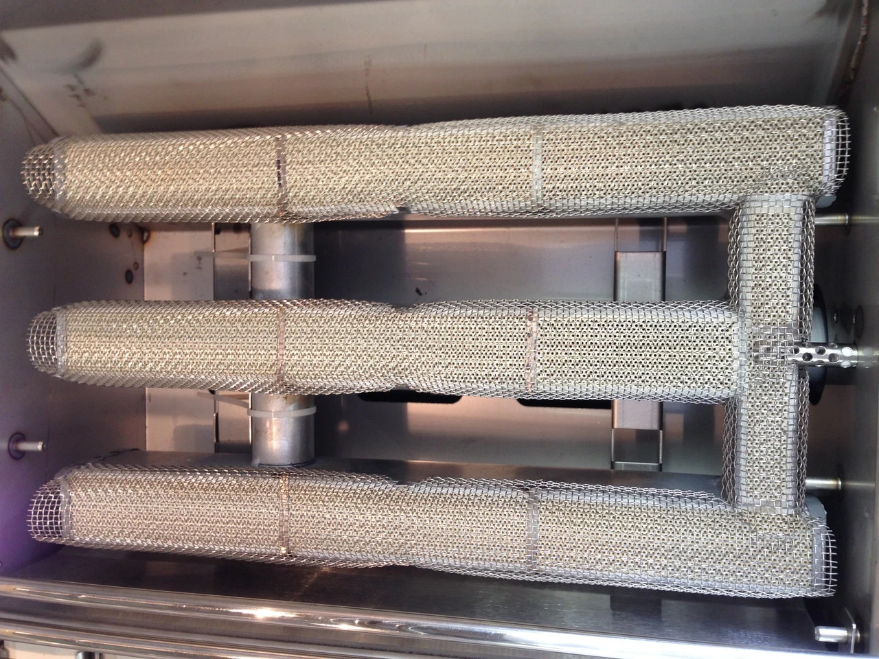 - Lift the trident burner out of the bracket, pull towards the back of the firebox and lift out. (You may need to remove the igniter electrode)