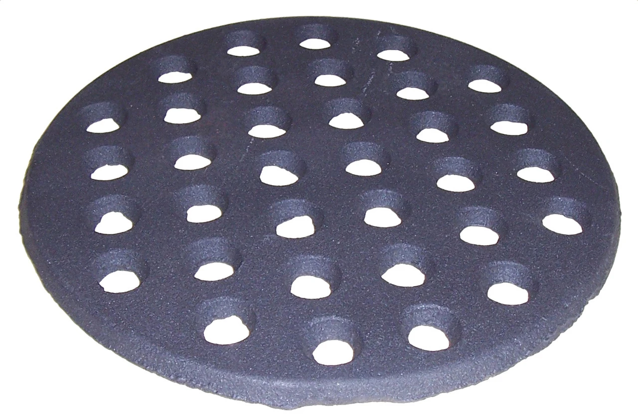 This 9-in dia Cast iron briquette grate fits the large big green egg